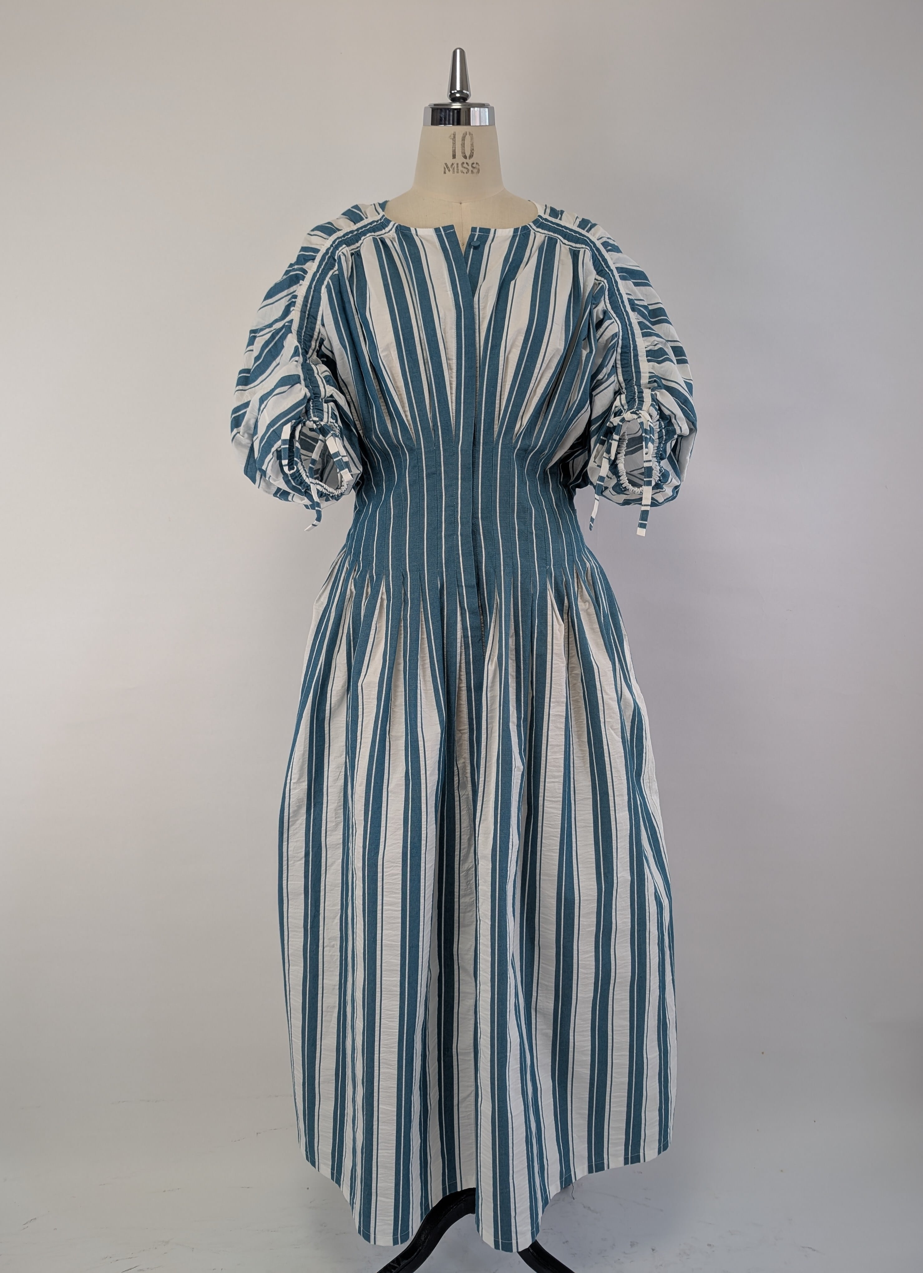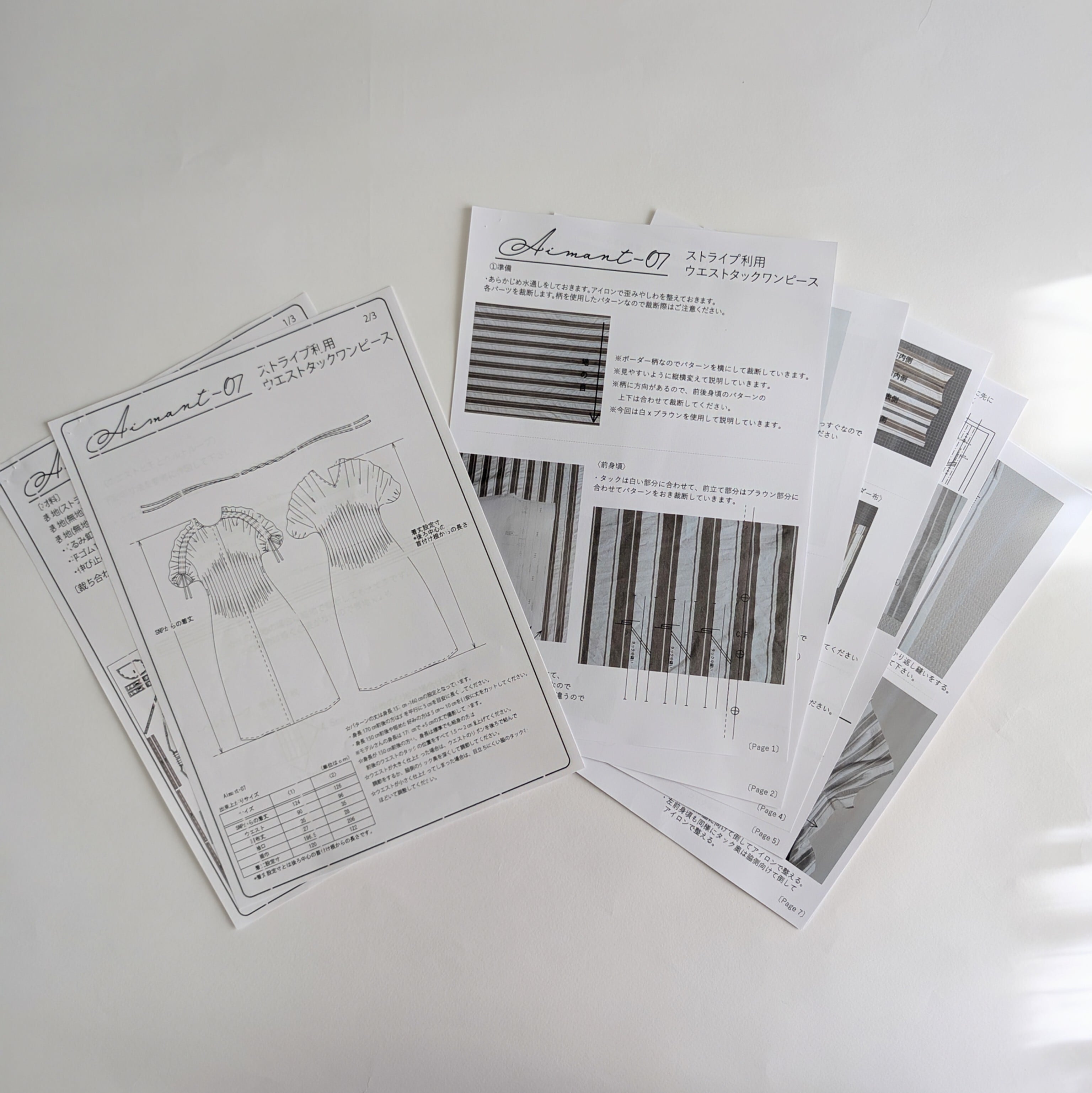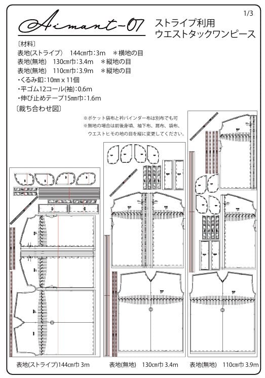 サイズ<1>Aimant-07ストライプ利用ウエストタックワンピースのパターン販売