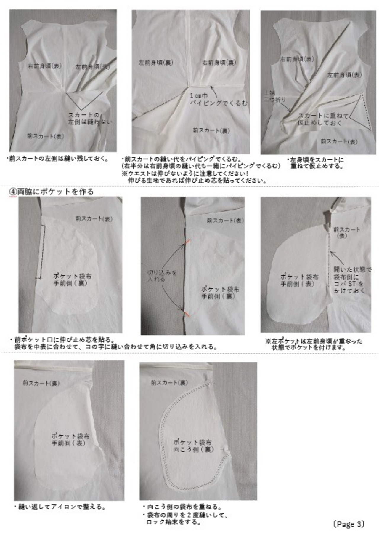 ・裁ち合わせ図等の説明書x3枚