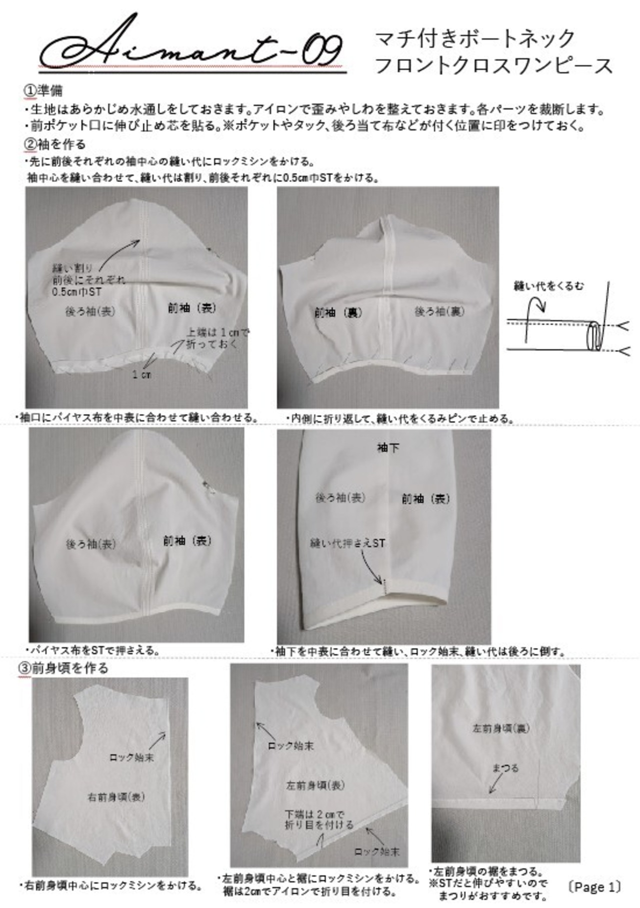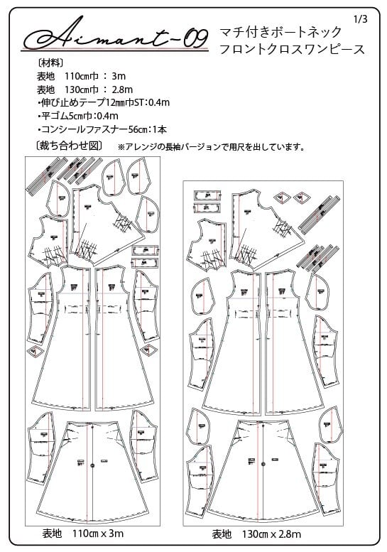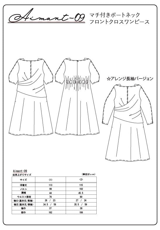 サイズ<1>Aimant-09マチ付きボートネックフロントクロスワンピースのパターン販売