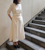 ・ウエスト部分に女性らしいシルエットを美しく見せる、タックドレープデザインのワンピースです。