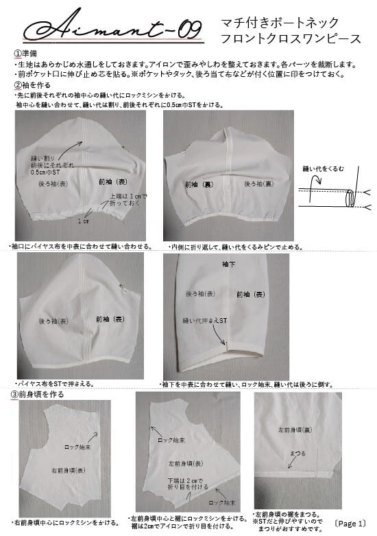 サイズ<2>Aimant-09マチ付きボートネックフロントクロスワンピースのパターン販売