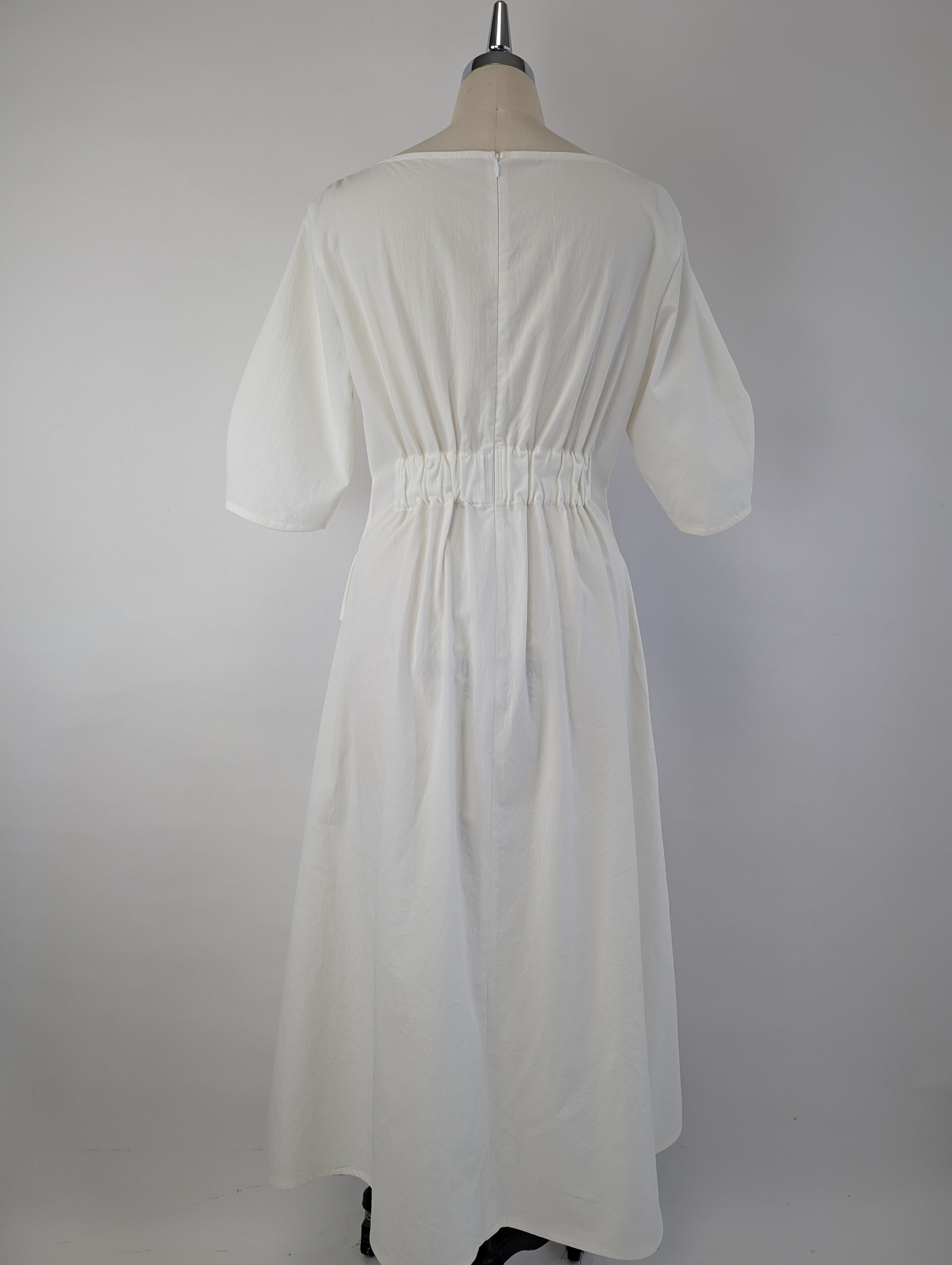 ・ウエスト部分に女性らしいシルエットを美しく見せる、タックドレープデザインのワンピースです。